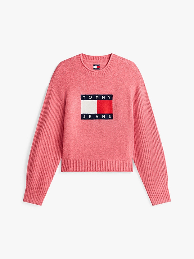 TJW MELANGE FLAG SWEATER RIB E DW0DW21782 TOMMY JEANS SWEAT MYSTIC PINK HTR XS 8721222179795