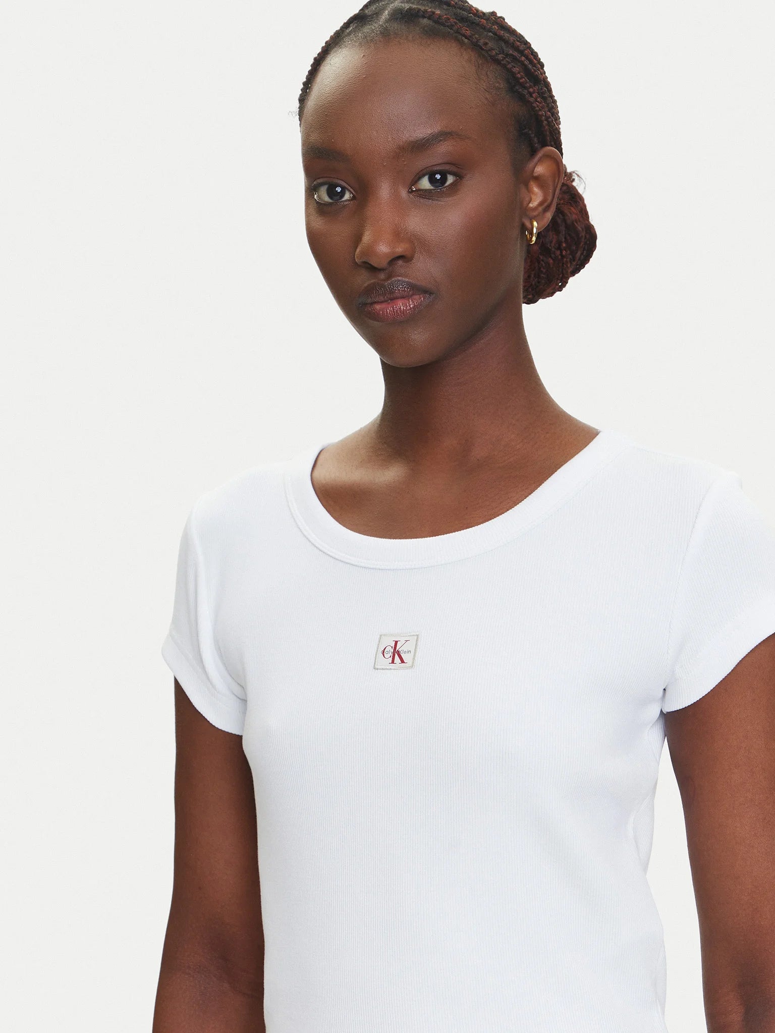 A- WOVEN LABEL 2X2 RIB BABY TE LV047C200G CALVIN KLEIN JEANS TSHIRT BRIGHT WHITE XS 8719849382209