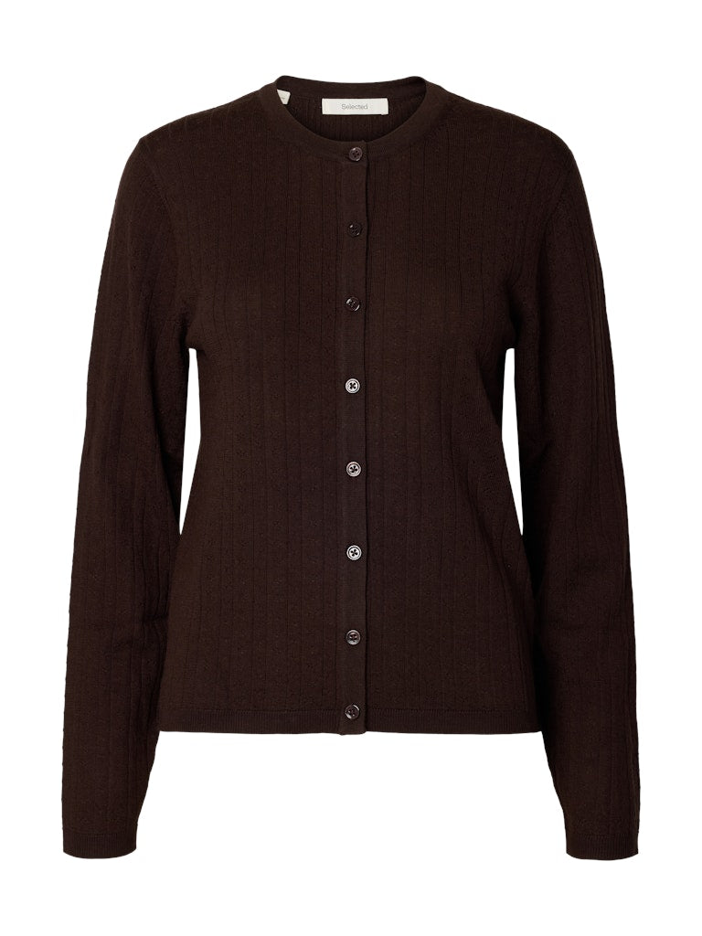 SLFTHEA LS KNIT MERINO POINTELLE CARDI 16101788 SELECTED WOMEN CARDIGAN CHOCOLATE TORTE XS 5715872496190