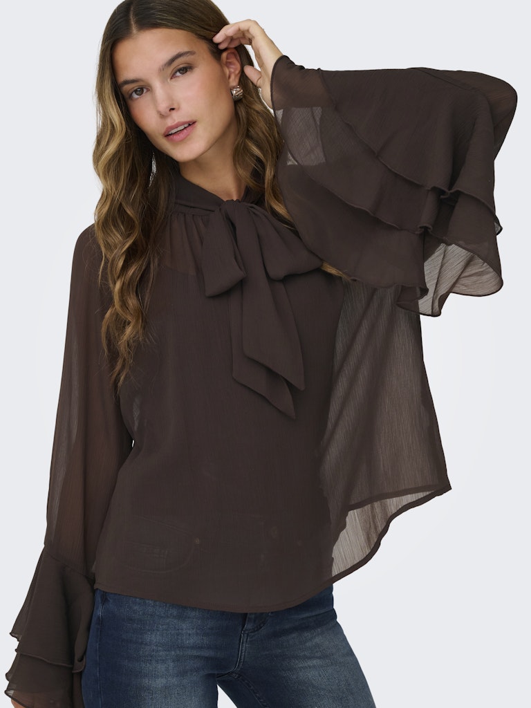 ONLPENINNA LS FRILL TIE TOP WVN 15367241 ONLY TSHIRT OXFORD TAN XS 5715866915942