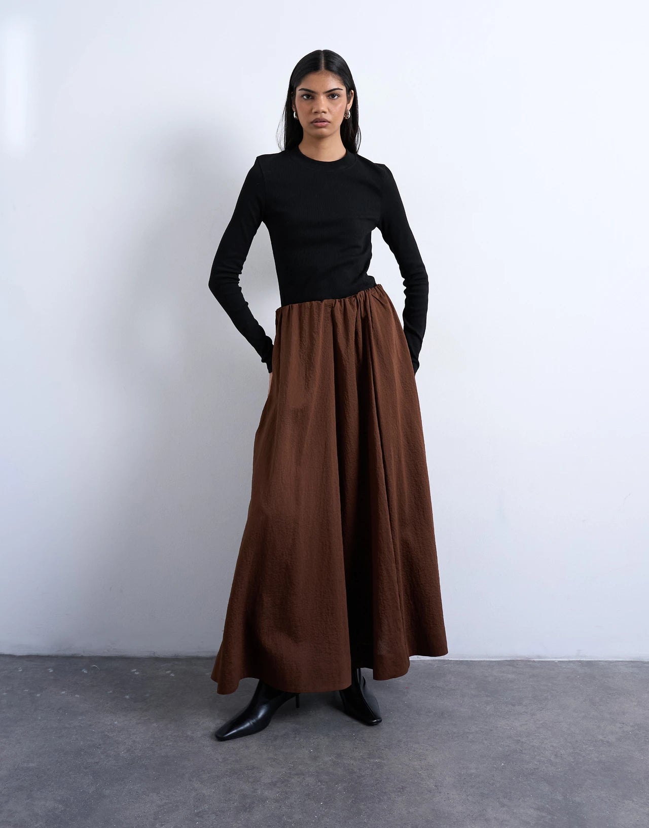TSLILOU HR FULL MAXI SKIRT WVN 31001159 TOPSHOP FUND CHOCOLATE BROWN 34 5715873154860