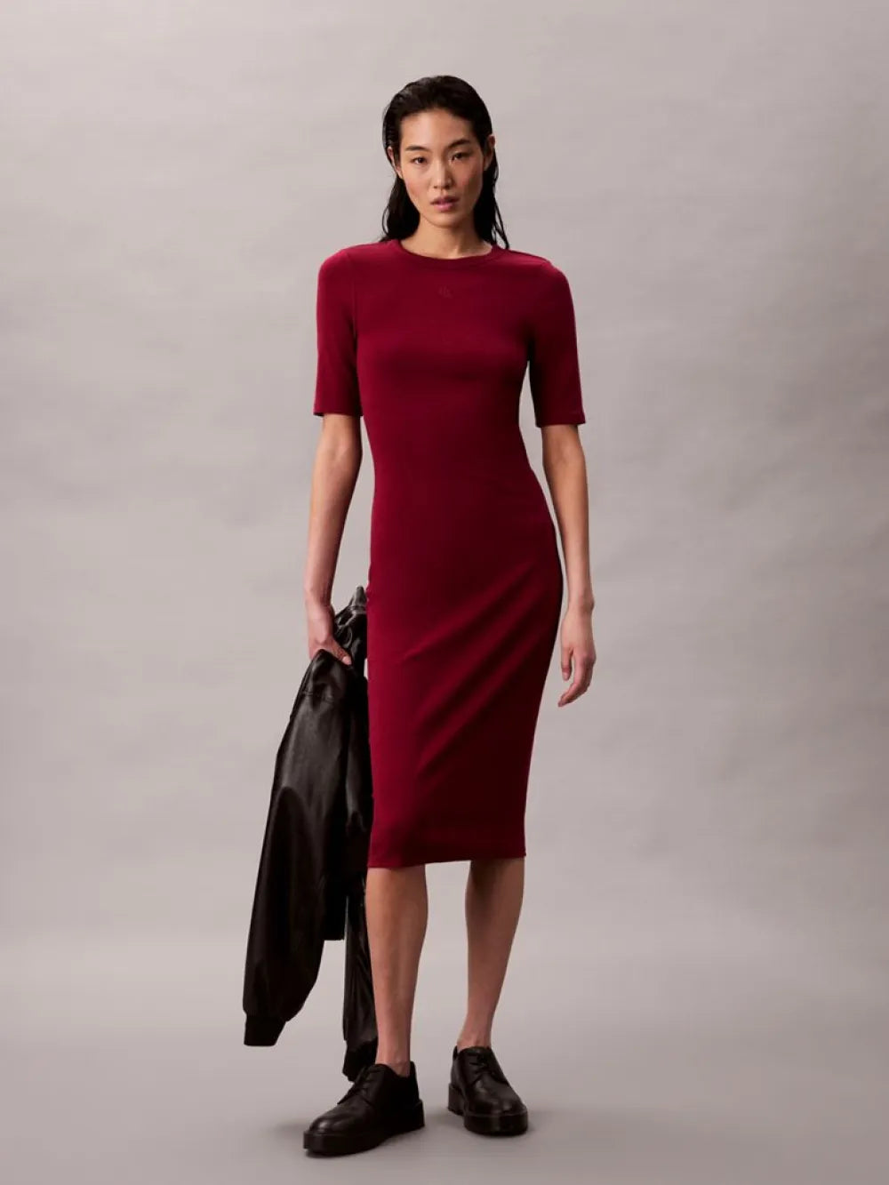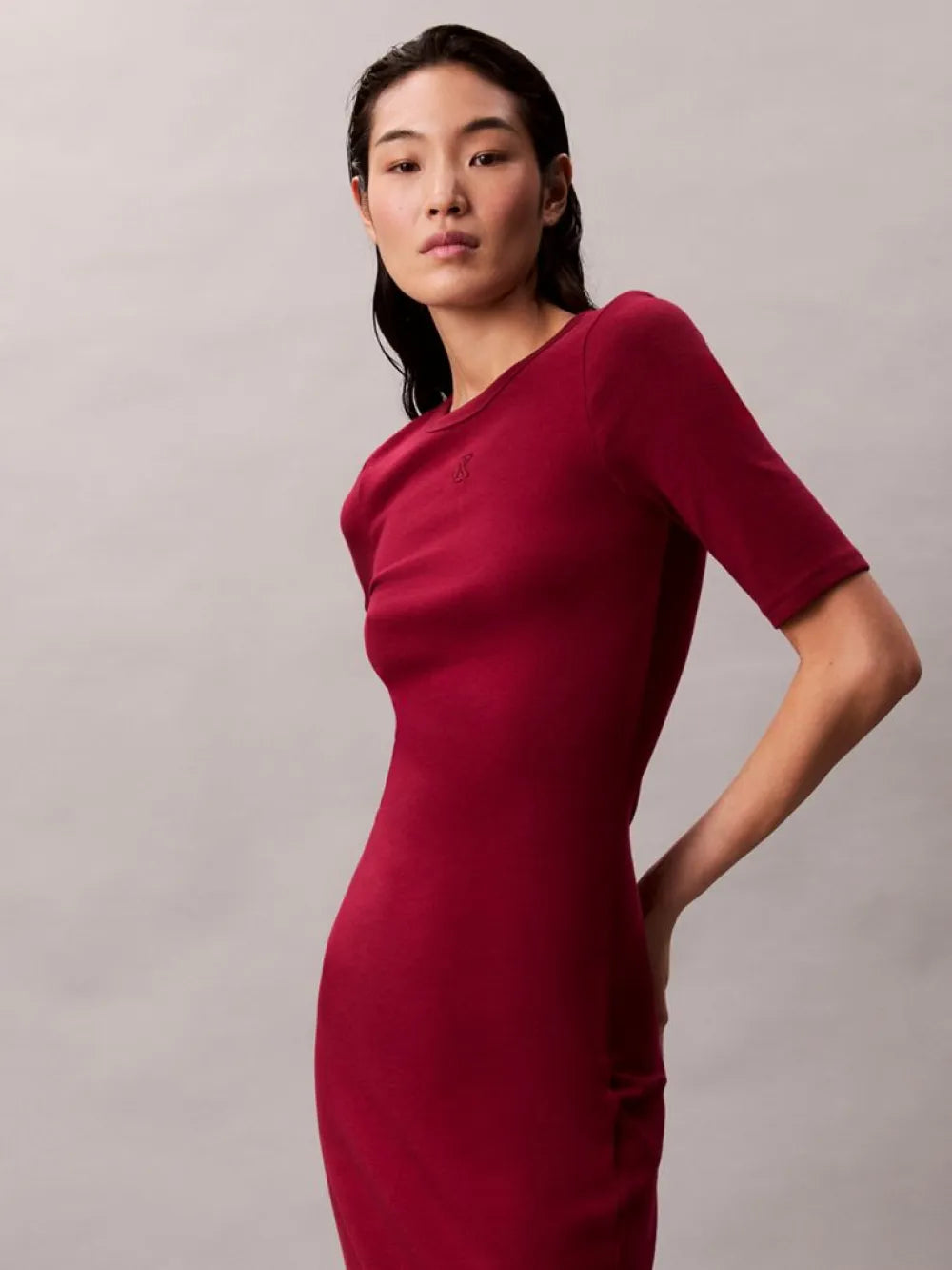 HS CTN CONTOUR 1X1 RIB MIDI DR LV047D217G CALVIN KLEIN JEANS FUSTAN MAGENTA JEWEL XS 8721187316600